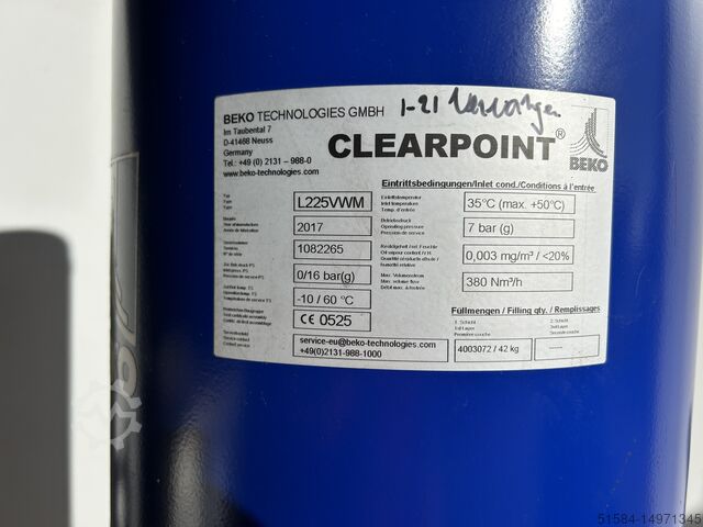 2017, Тип - L225VWM, температура -10'C до 60'C, давление на входе 0/16Bar, рабочее давление 7Bar, максимальный объемный расход 380Nm3/h