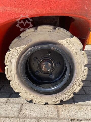 Описание: Полная кабина с отоплением, рабочие фары спереди и сзади, 3-й и 4-й клапаны на каретке вил, поворотный маяк, 2x поперечных рычага, две педали, солнцезащитные козырьки