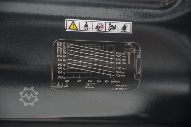 LINDE E 20 PH-02 поднимает до 2000 кг на высоту 4625 мм с помощью мачты TRIPLEX. Последняя наработка 4171 час.