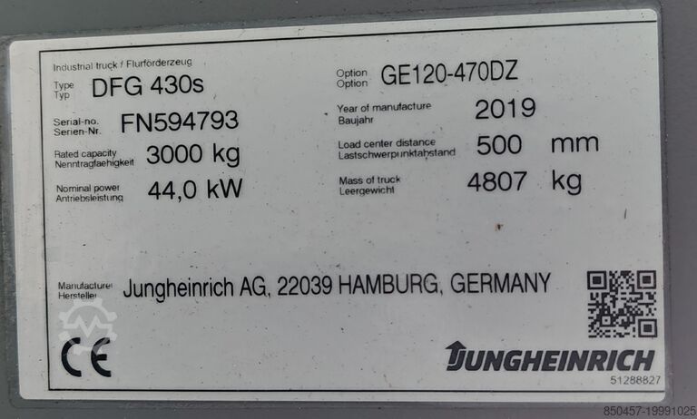 Дизельные погрузчики Jungheinrich DFG 430s /2019y /7844mh/ 4.7m/ rotator