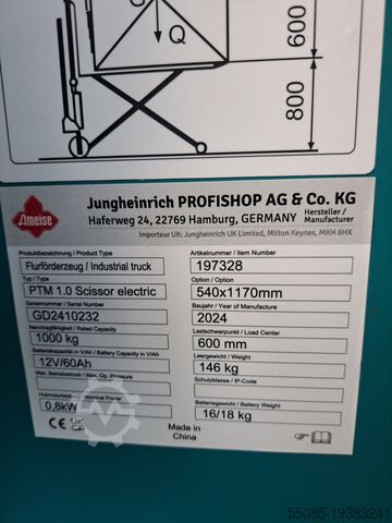Привод: ручной; Диапазон подъема: 85-100 мм; Перемещаемость по высоте: до 400 мм; Центр нагрузки: 600 мм; Материал рулевого колеса: нейлон; Оборудование вилочных роликов: одиночное; Скорость опускания с/без груза: 0,1 м/с / 40 сек; Цвет шасси по RAL: RAL 5018 бирюзово-синий; Встроенное зарядное устройство для легкой подзарядки