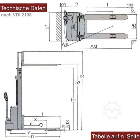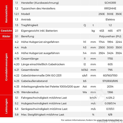 Электрическая высокоподъемная гидравлическая тележка SCHORR модели RR12HH с высотой подъема 2500 мм