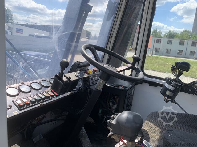 К продаже предлагается мощный вилочный погрузчик Svetruck TMF 12/9 с собственной массой 50 тонн и грузоподъемностью согласно. Грузоподъемность 12 тонн (в реальности без проблем с грузоподъемностью 20 тонн) поднимается на высоту до 7,5 метров.