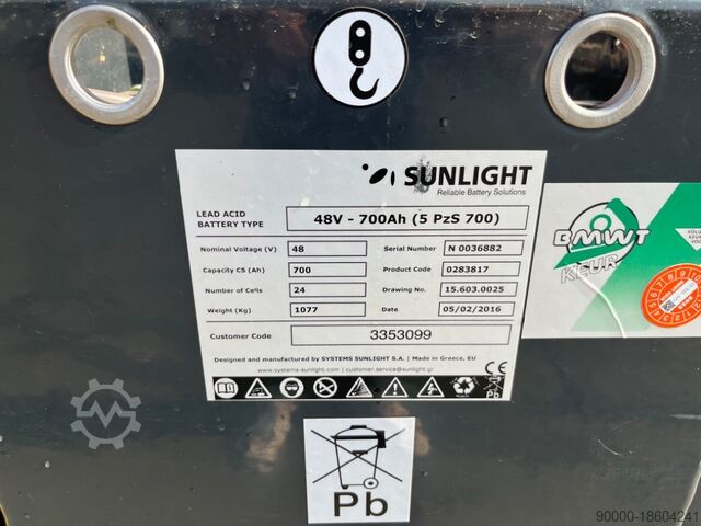 Аккумулятор: 700 Ач, 48 В, год выпуска 2016, марка аккумулятора Sunlight