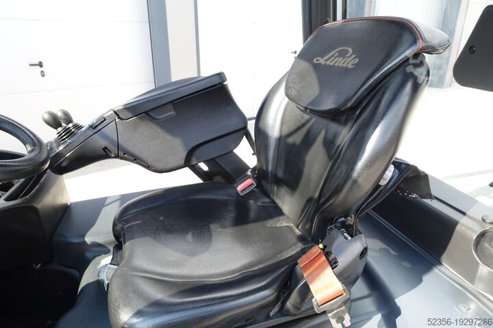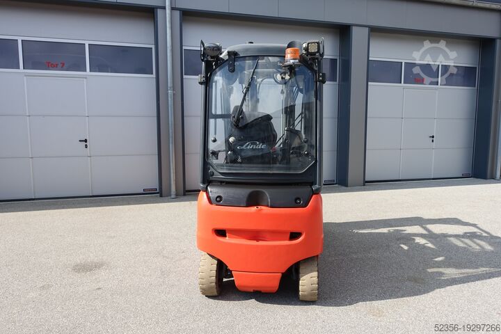 Трехколесный электрический вилочный погрузчик Linde E20PH 2т, 2016 г.в., грузоподъемностью 2000 кг. Мачта представляет собой трехсекционную мачту с полным свободным ходом, с высотой подъема 4600 мм. Установлен сайдшифт с регулятором вилки от Durwen.