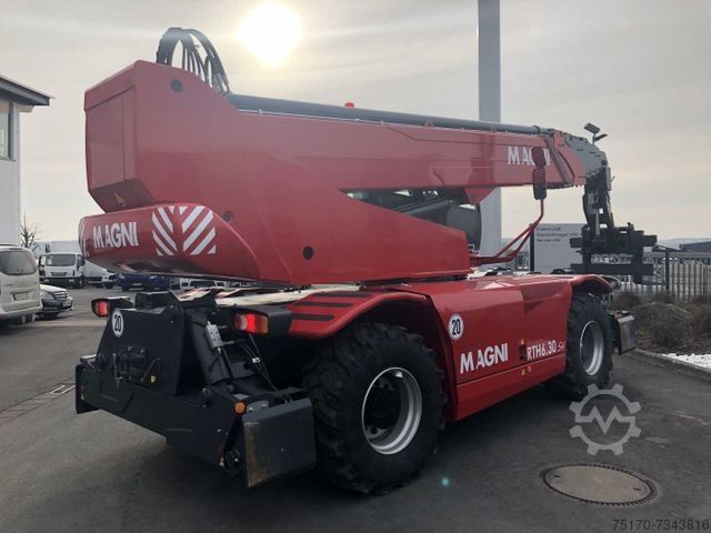 Magni RTH 6.30 telehandler, year of manufacture: 2022, operating hours: NEW!, quick coupler, pallet fork, radio remote control, prepared work basket, 3rd hydraulic circuit, air conditioning, pressurized cab, radio/CD, touch screen display, ROPS/FOBS cab, engine: Volvo Penta [150kW/204hp], automatic levelling, variable outriggers, 20km/h (optional 40km/h), maximum lifting height: 29.80m, maximum lifting capacity: 6,000kg, warranty: 2 years/1,500 hours, multiple available!