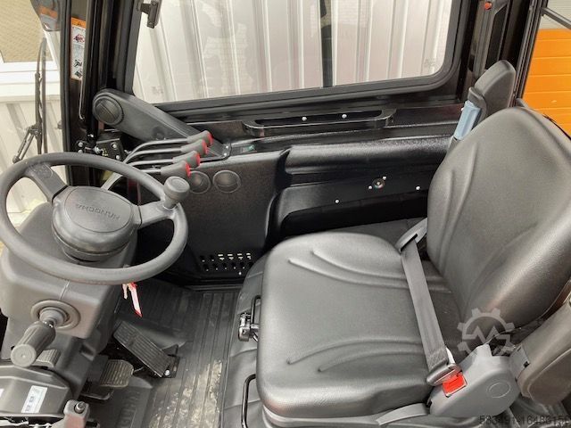 Описание: Полная кабина с отоплением, освещение аналогично STVO, задние рабочие фары, BlueSpot сзади, 3-й + 4-й клапан до каретки вил, поворотный маяк, внутреннее зеркало, ручной рычаг