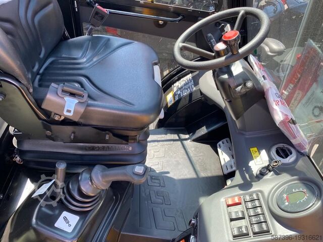 Клапан наклона мачты, подвеска груза, 3-й гидравлический комплект, фиксированное соединение для 3-го гидравлического контура Пластиковое сиденье с пневматической подвеской GRAMMER MSG95 Галогенное уличное освещение спереди и сзади Фильтр предварительной очистки Cyclone Высокорасположенный вертикальный выхлоп на противовесе Запираемая крышка топливного бака Сигнал предупреждения о движении задним ходом Удлинитель переднего крыла Металлический удлинитель переднего крыла