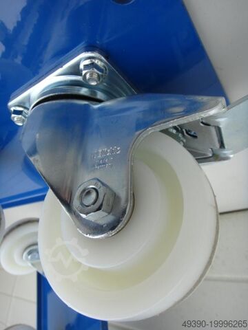 - На каждом ролике установлено по 4 поворотных ролика с белыми полиамидными колесами, закрепленными на несущем листе