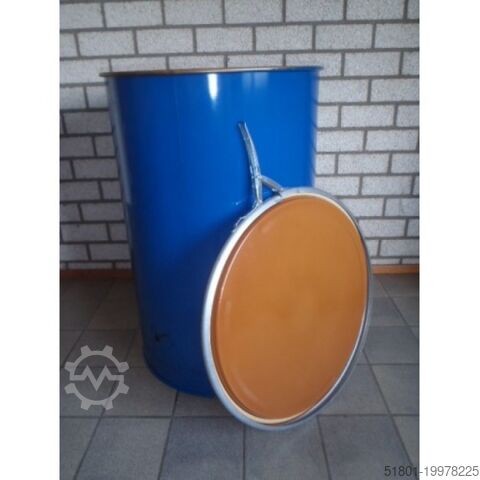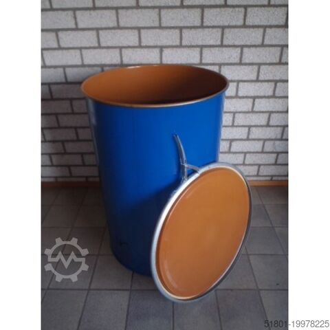 Стальная бочка 200 литров с крышкой и обжимным кольцом. Продукты можно хранить герметично и водонепроницаемо – идеально подходит, например, для погреба. Также подходит для хранения, например, кормов – грызуны не имеют доступа.
