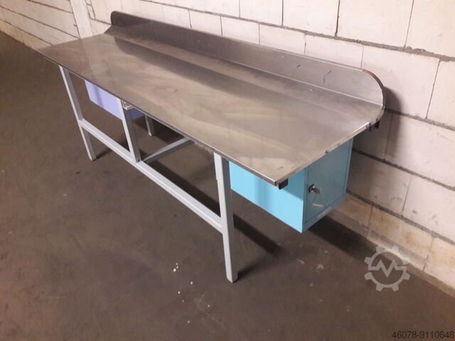 Рабочий стол Упаковочный стол Верстак со столешницей из нержавеющей стали, задней стойкой и 2x запираемыми контейнерами