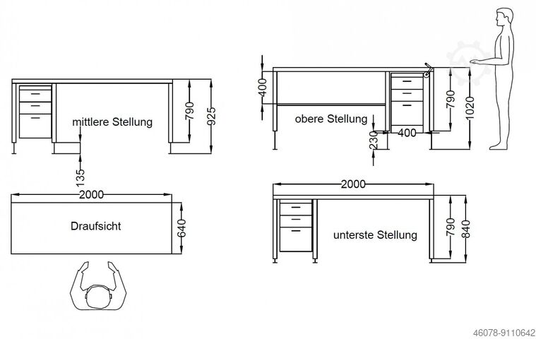 Верстак Упаковочный стол Регулируемый по высоте верстак с деревянной столешницей и выдвижным контейнером