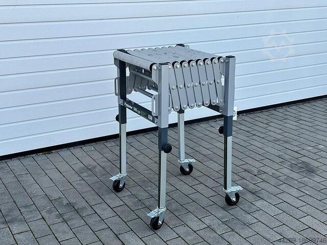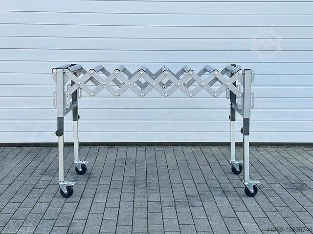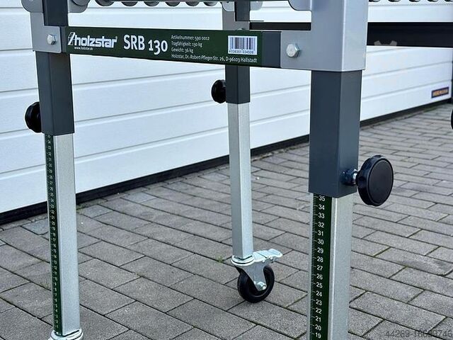 Мобильный ножничный роликовый конвейер Holzstar типа SRB 130 для гибкого использования перед обрабатывающими станками или за ними с прочной, регулируемой по высоте стальной рамой и оцинкованными стальными роликами. Несколько роликовых конвейеров или роликовых дорожек можно легко соединить друг с другом с помощью двух крюков.