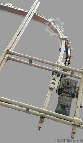 Подвесная конвейерная система OMNIFLO с линейной направляющей и приводной кривой, алюминий