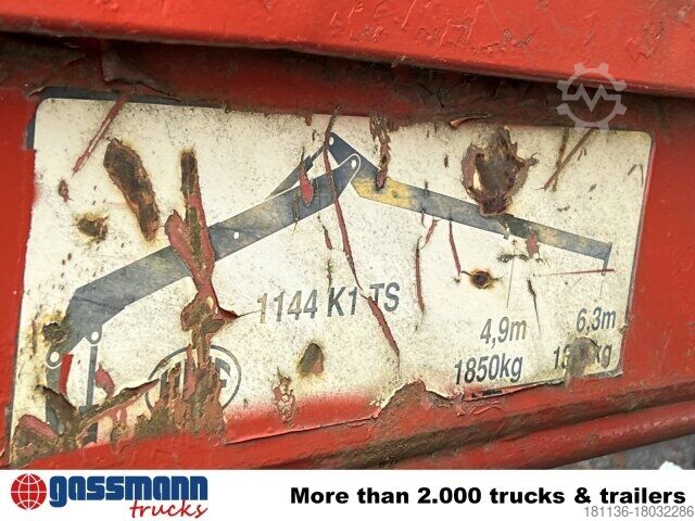 Body: Container with hinged doors and crane. HMF 1144 K1 TS. Total length approx. 6750mm, approx. 21m³. Crane: 4.9m 1850kg, 6.3m 1350kg. ACCESSORY INFORMATION WITHOUT WARRANTY, subject to alterations, prior sale and errors excepted!