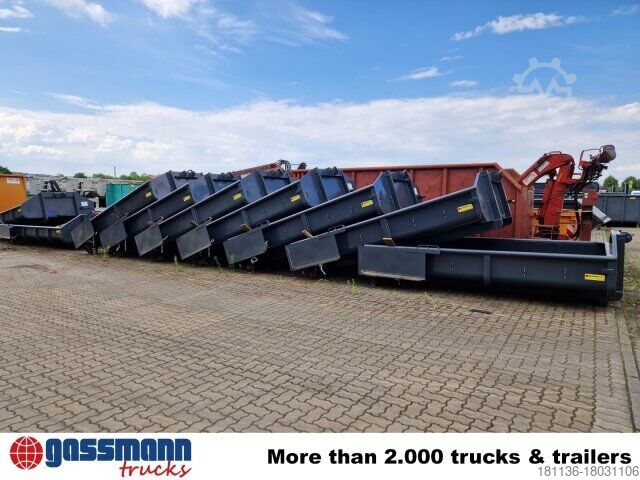 Body: City roll-off container with hinged doors, approx. 3.8m³ - Mounting fittings for CITY hook systems to DIN 30722-3, with lubricatable and replaceable outer rollers at the rear, and UNP-140 subframe