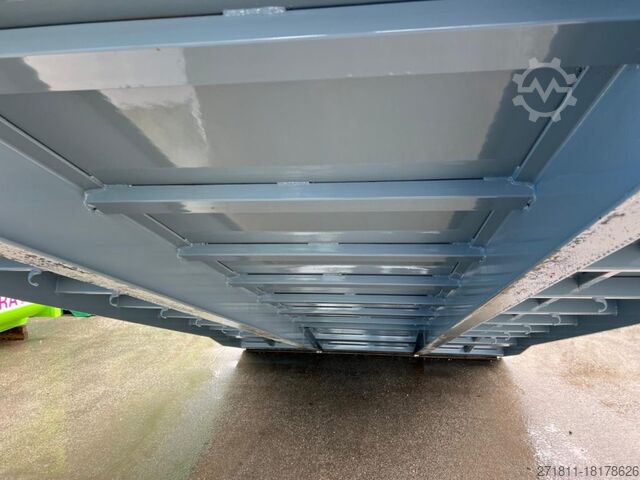 TITLE: NEW FLAT-BED HOIST CONTAINER WITHOUT SIDES AND ZERO TAIL FOR LOADING VEHICLES WITH REINFORCED FLOOR SUPPORTED BY 200 MM BEAMS REINFORCED BY MT. 2.50 IN THE CENTER ON THE OUTER PART PLUS REINFORCEMENT AT THE FRONT YIELD POINT, 2 RETRACTABLE ANCHOR HOOKS AND HOLES ON BOTH SIDES H. 20 CM AND 1 CM PLATE