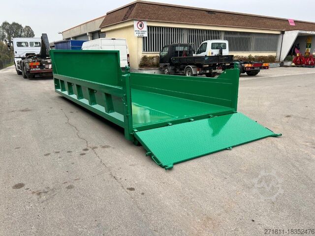 TITLE: NEW HOOK-AND-LOAD CONTAINER WITH SQUARE BODY, REAR OPENING WITH UPWARDS AND DOWNWARDS TILTING (LOADING RAMP FUNCTION) WITH 200 MM BEAMS AND SUPPORTED FLOOR, 0.60 MT HOOK, LARGER WHEELS AND REINFORCEMENT IN THE CENTRAL EXTERNAL PART OF THE CENTERLINE PLUS REINFORCEMENT IN THE FRONT PART AT THE YIELDING POINT