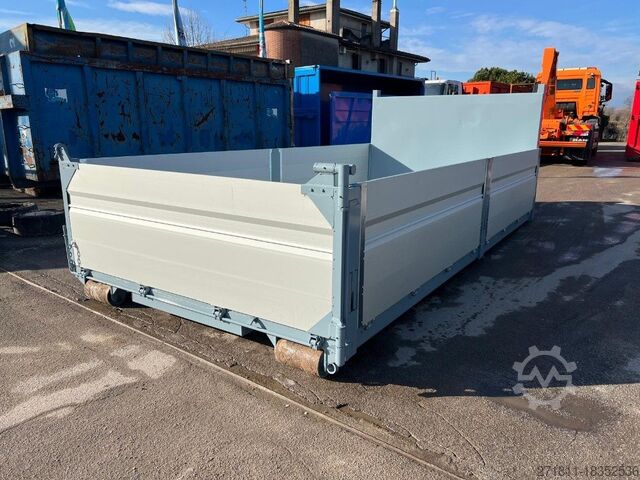 TITLE: NEW REINFORCED PLATFORM HOOK-UP CONTAINER WITH TWO SIDES PER SIDE IN TR1 AND REAR SIDE IN DOUBLE EFFECT TR1, FLOOR SUPPORTED BY 180 MM BEAMS WITH 2 UPPER AND LOWER HOOKS FLUSH WITH THE BODY PLUS CONCEALED HOOKS ON THE PERIMETER