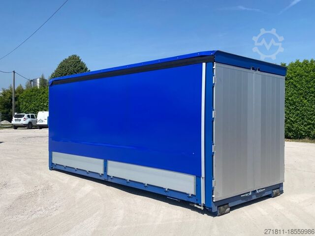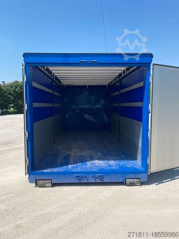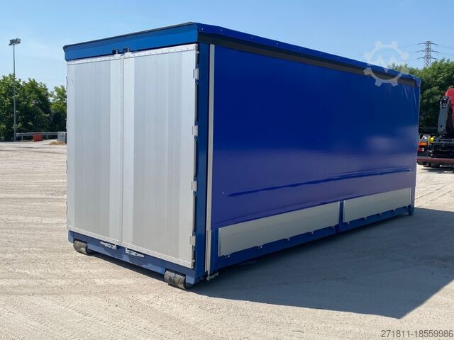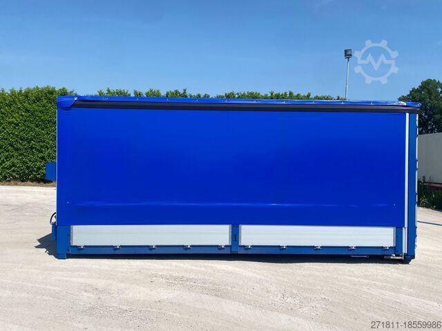 TITLE: NEW CUSHIONED HOOK-UP CONTAINER WITH FIREPROOF TARPAULIN, HYDRAULIC RAISING AND LOWERING WITH 4 HYDRAULIC PISTONS AND REAR OPENING WITH 2 TR1 ALUMINUM DOORS WITH 1+1 TR1 SIDE SIDES