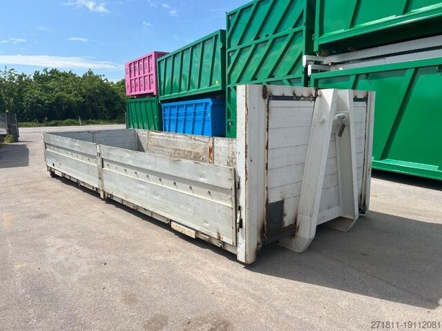 TITLE: USED FLAT-BED HOOK-UP CONTAINER WITH ALUMINUM SIDES TR1 WITH NEW REFURBISHED FLOOR SUPPORTED BY 200 MM BEAMS REINFORCED IN THE EXTERNAL CENTERLINE AND CONCEALED ANCHORING HOOKS.