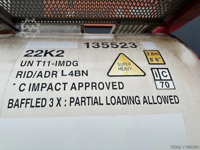 Body make: CIMC 2016, 20FT, 25,000L, L4BN, UN Portable, T11, steam heating, bottom discharge, 5Y: 10/2022