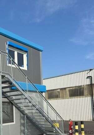 Контейнерная лестница Высота этажа до прибл. 2,70 м, перила, 15 ступеней, с возможностью расширения на 3 дополнительных ступени как начальный подъем, тогда до высоты этажа прибл. 3,00 метра