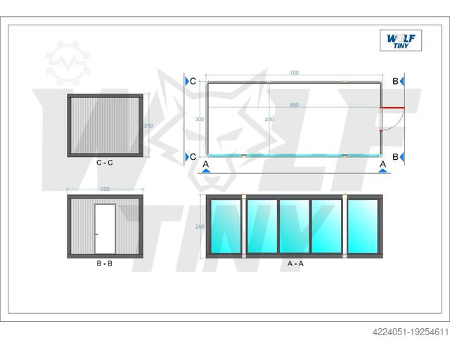 • Размеры: 3,00 м ширина x 7,00 м длина x 2,50 м высота