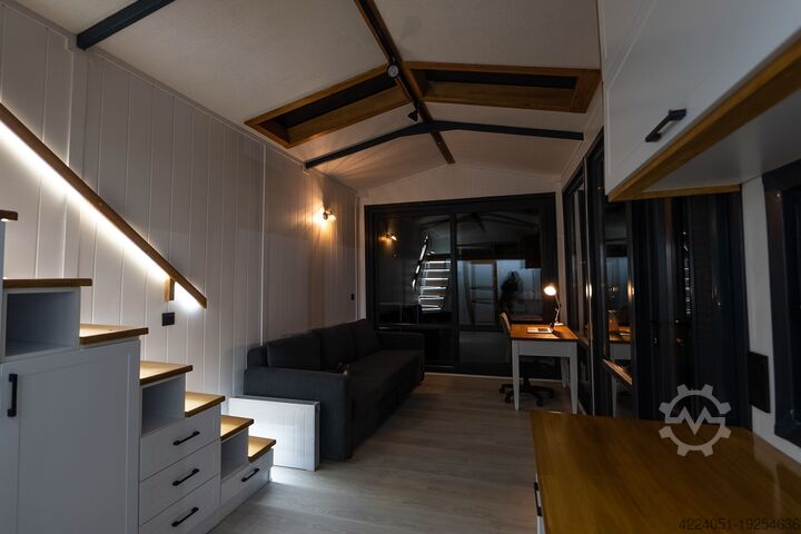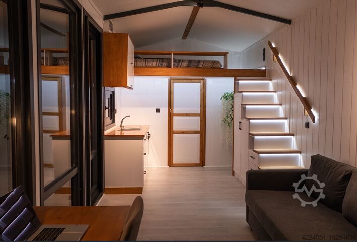 Das Tiny House Freedom идеально подходит для всех компактных, домашних компьютеров и мобильных телефонов. Die durchdachte Raumaufteilung und die Große Glasfront sorgen for Ein Offenes und Einladendes Raumgefühl.