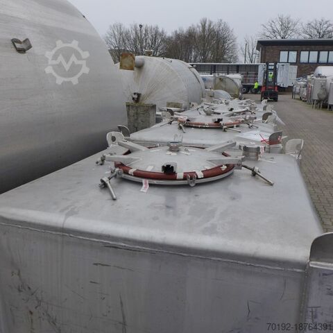 Оборудование Люк / купол в верхнем этаже (DN 400) Оборудование Дисковый кран выход DN40 DIN 11851 Замечания Признаки использования Замечания Рама из V2A; возможны вмятины на контейнерах; винтовые соединения крышки люка частично неполные (на одном контейнере крышка люка отсутствует); ручные рычаги дисковых кранов погнуты (некоторые дисковые краны или ручные рычаги также отсутствуют) Последнее назначение Промышленность фруктовых соков
