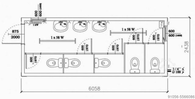 Размеры: 6 058 мм x 2 438 мм x 2 890 мм