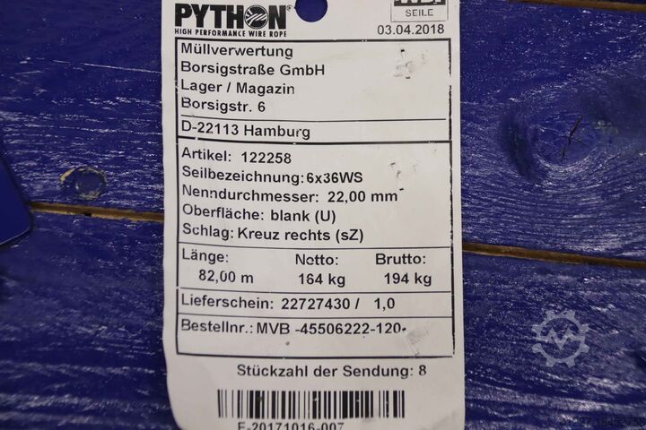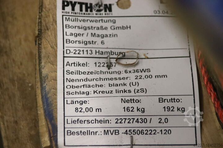 - Производитель: WDI Python, канат для крана/лебёдки Ø 22 мм