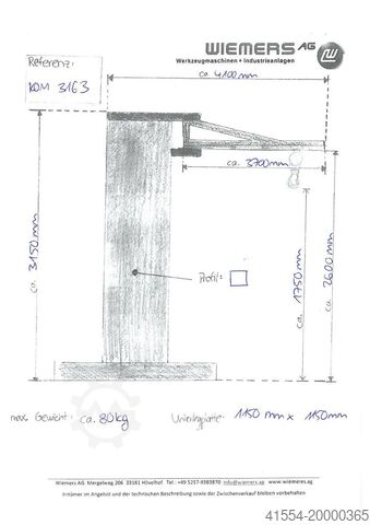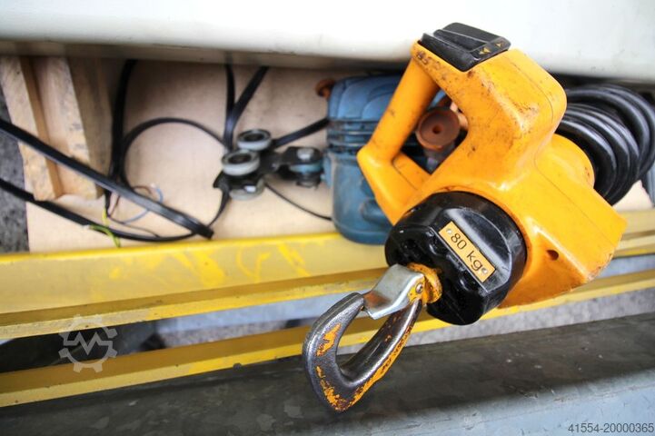 Здесь предлагается грузовой кран компании Abus. Грузоподъёмность крана составляет до 80 кг. В дополнение к крану вы получите соответствующий приводной агрегат, включая цепную таль, состоящую из цепи и крюковой подвески. Размеры указаны на последнем изображении.