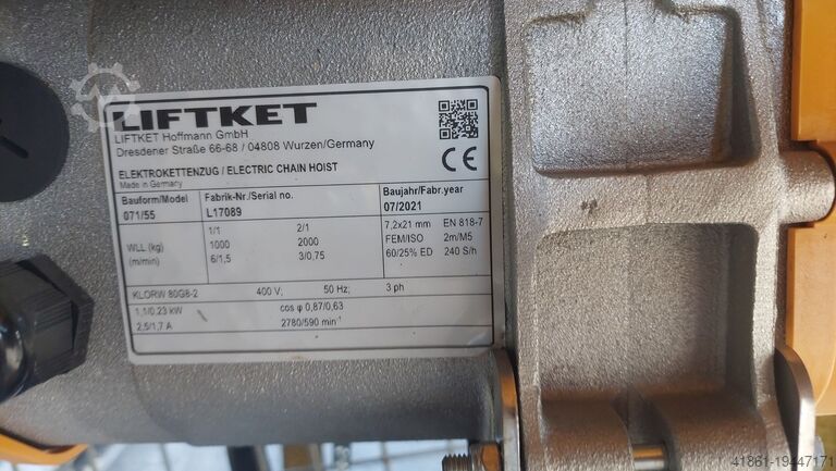 - Ход крюка: ок. 3000 мм