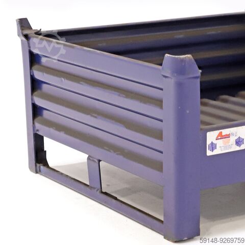Использованный контейнер для хранения стоит на устойчивых салазках, поэтому его легко поднимать с помощью вилочного погрузчика или тележки для поддонов.