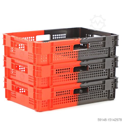 Предложение поддонов, состоящее из 120 штабелируемых и вкладываемых друг в друга пластиковых ящиков для хранения (600x400 мм).
