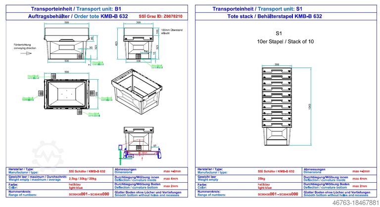 около 40 000 шт., SSI Schäfer, КОНИЧЕСКИЙ, штабелируемый многоразовый контейнер KMB B632, с ручкой, 56 л - б/у - :