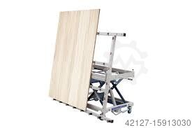 ᐳ Мобильный ножничный подъемный стол с рамой основания платформы и 4 отверстиями для фиксации штифтов; 4 поворотных ролика, 2 из которых с тормозами; колеса Ø 125 мм; управляется с помощью ножного насоса