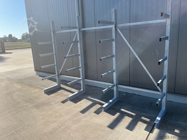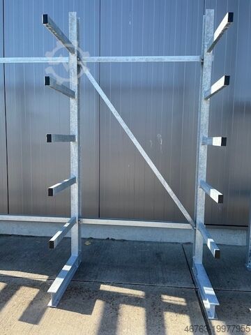 Консольный стеллаж для легких грузов, односторонний, высота рамы 2 м, длина стеллажа около 3 м, глубина консолей 50 см, нагрузка на одно консольное плечо — 200 кг, горячее цинкование — новое изделие: