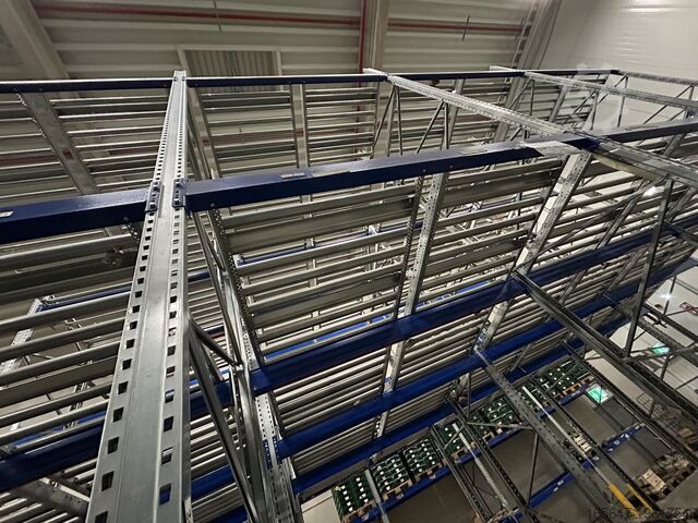 1 паллетный гравитационный стеллаж от производителя Bito, полностью работоспособный. Вместимость 96 паллетных мест.