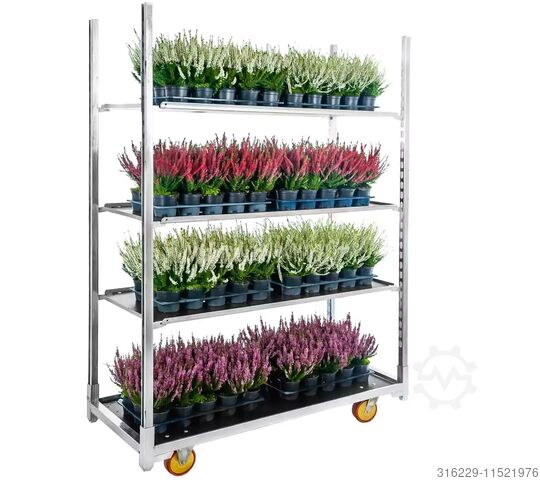 Датская цветочная тележка, имеющая идентичные размеры с тележками CC, используется для перевозки и хранения рассады и цветов. Датская полка оснащена полками грузоподъемностью 100 кг каждая (при равномерно распределенной нагрузке). Полки можно регулировать по высоте каждые 5,5 см. Это позволяет легко подгонять их под размер хранящихся растений. Тележка Dutch изготовлена из высококачественной оцинкованной стали, а полки — из водостойкой фанеры. Все это делает наши цветочные тележки долговечными и очень функциональными.