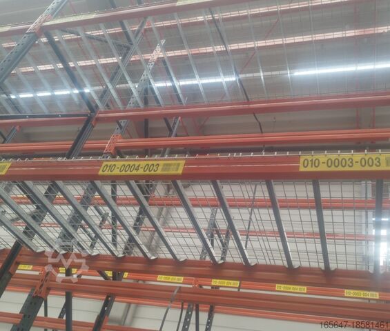 В предложение входит: 10 стоек 6,3 м x 100 см (высота x глубина) и 64 поперечные балки 270 см и 8 поперечных балок 1,8 м, а также фиксирующие штифты, что обеспечивает 5 уровней хранения на каждом полочном поле, включая уровень пола.