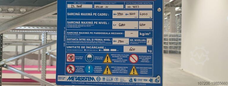 Металлическая система drive-in, вместимость 98 европаллет, нагрузка 600 кг/паллет