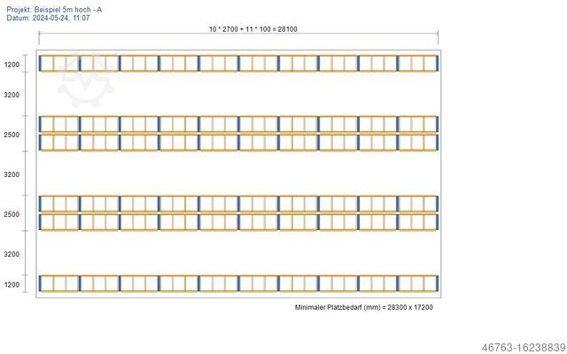 Длина стеллажа: 28100 мм