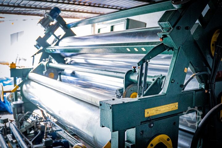 Скорость вращения валков и толщина листа задаются на панели управления шкафа управления каландра.