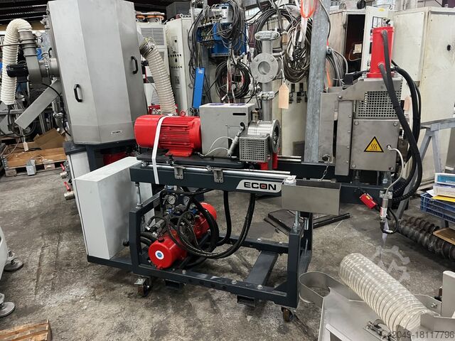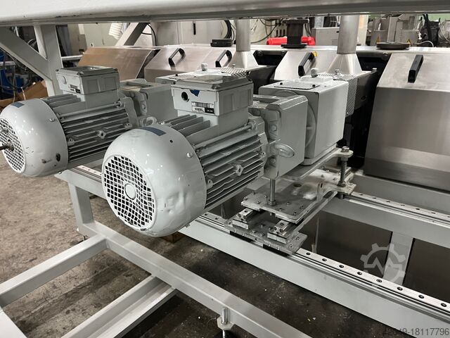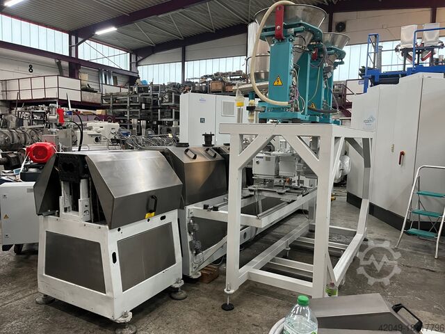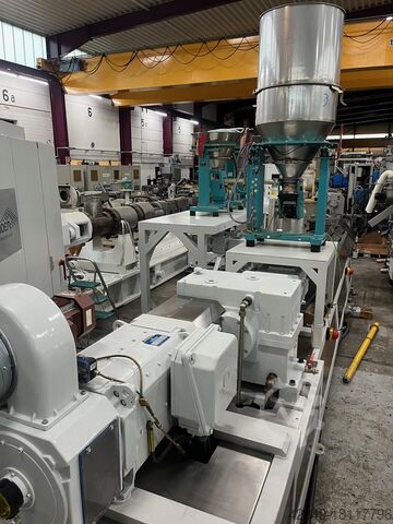 Материал: ПЭ, ПП, ПС, АБС // Дополнительные сведения: Машина с параллельным вращением, дегазация – 2 боковых питателя, 6 гравиметрических дозаторов Schenk, подводный гранулятор ECON EUP 600, классификационный грохот Trendelkamp, дегазация, вакуумный насос, система управления: BSG