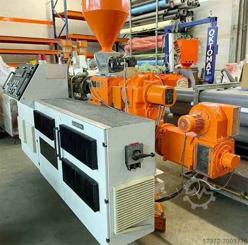 Производительность: 140-180 кг/ч, диаметр шнека: 50-103 мм, длина шнека: 1300 мм, макс. скорость шнека: 43/мин, подключенная нагрузка: 25 кВт, часы работы: 62 590 ч, включая дозатор с бункером, вакуумный насос, блок охлаждения цилиндра и контроль температуры шнека.