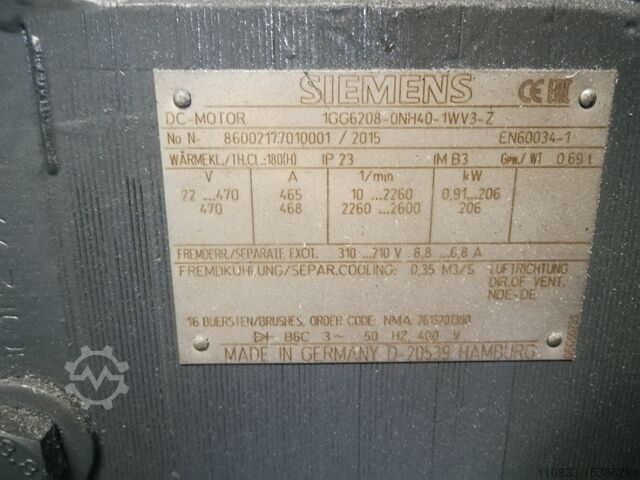 1 приводной двигатель SIEMENS 1GG6208 с принудительной вентиляцией 470 В, 468 А, 206 кВт, 2600 об/мин, 310 В, 6,8 А - НОВЫЙ, 2015 г.