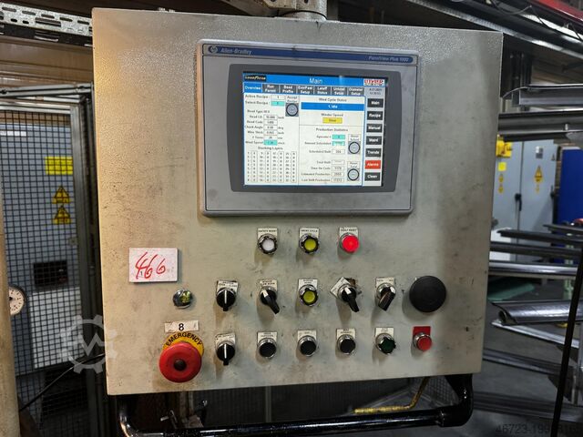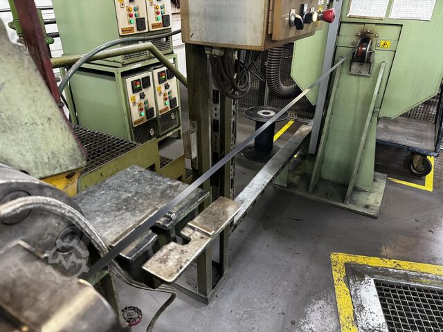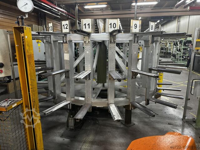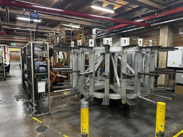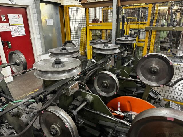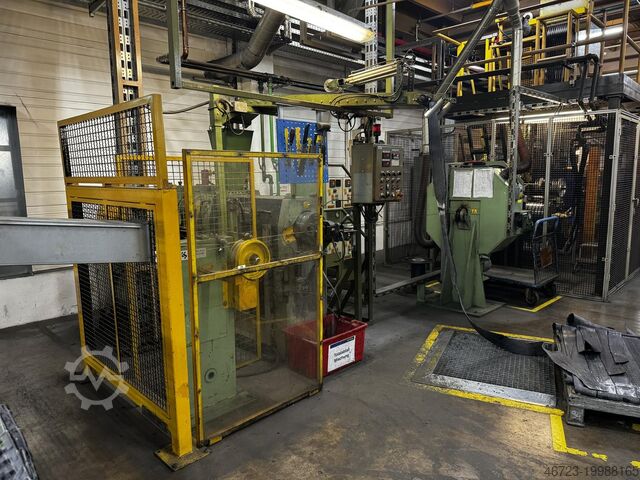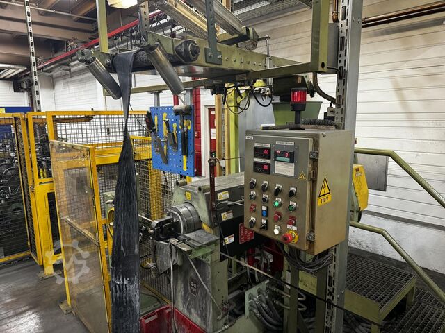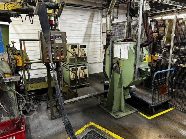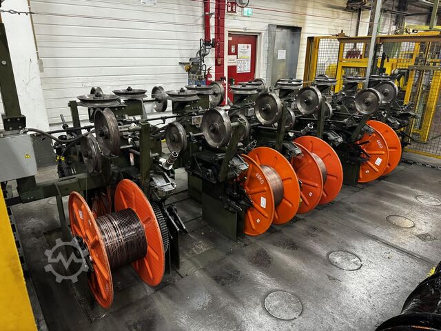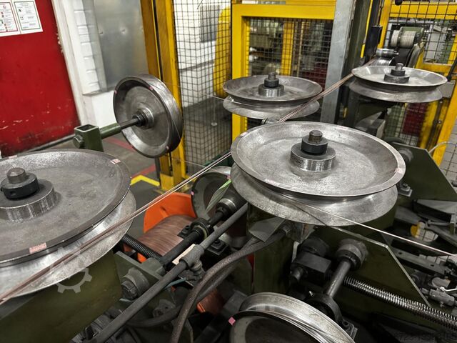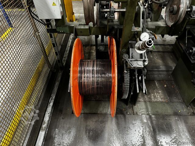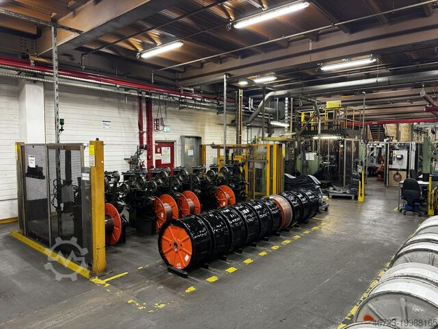 Одна линия состоит из намотчика колец, экструдера для колец и охлаждающей линии, карусели и загрузочного робота + намотка катушек.