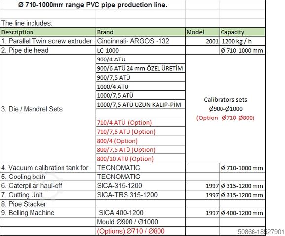 Линия по производству труб из ПВХ диаметром 710-1000 мм.